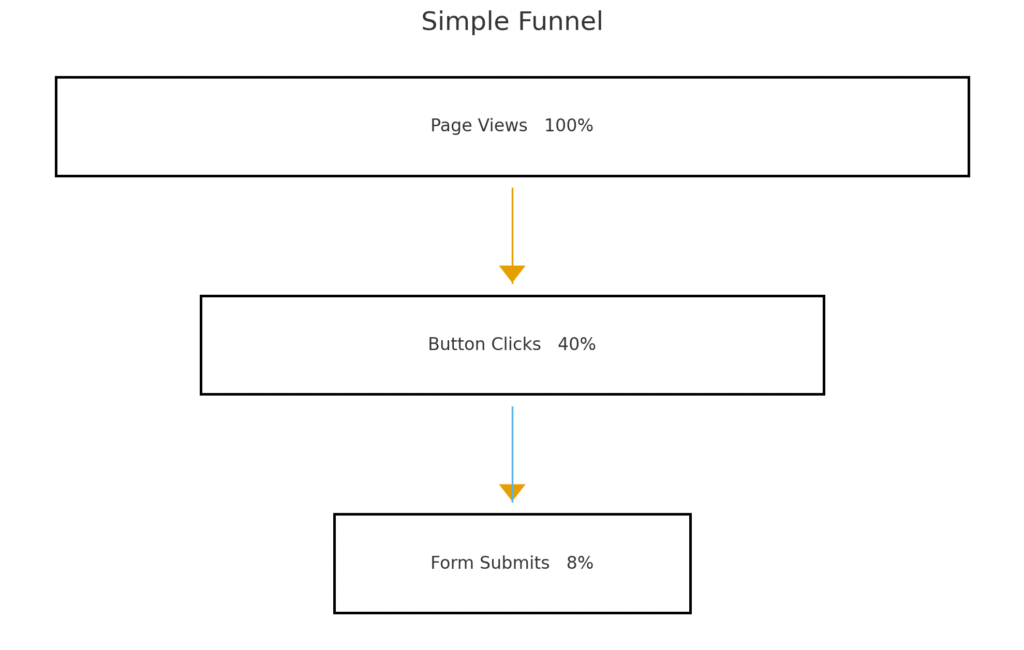 Build a straightforward funnel that matches your objective: page view → button click → form submission. If you see the biggest drop before the button, fix the message next. Write a clearer benefit first headline and tighten the above-the-fold copy. If the form loses many users, consider removing fields, adding helper text, or placing a short privacy note near the submit button to ease hesitation. Use heatmaps to check whether visitors see the CTA. Watch replays to spot what slows people down. Ask ChatGPT to turn your replay notes into three observations and three actions so you move from interesting to actionable.